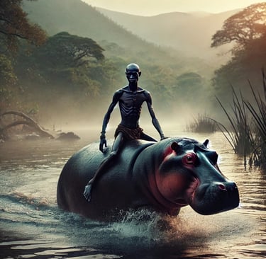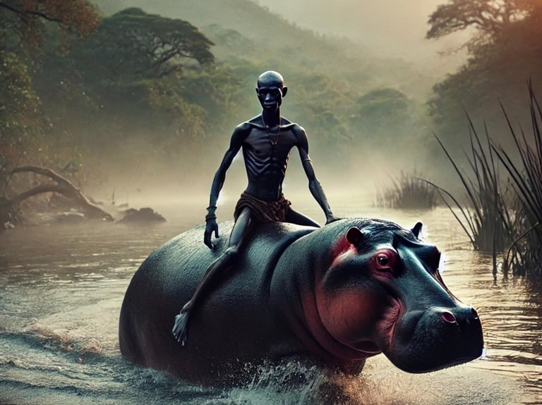 In the heart of the Lower Shire, tales of Ndata—the revered shaman—echo through the dense foliage and shimmering waters. Known for his profound connection to the river and its majestic inhabitants, Ndata was said to possess the rare gift to communicate with its ferocious beasts. His uncanny ability to commune with mighty hippos, which ruled the depths of the river, set him apart as a legend both revered and feared.